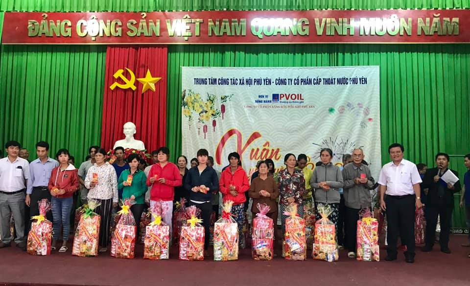 Công ty CP Cấp thoát nước Phú Yên đã tặng 250 suất quà cho các hộ nghèo thuộc huyện Phú Hòa, mỗi suất quà trị giá 400.000 đồng (trong đó 200.000 đồng bằng tiền mặt và 200.000 đồng bằng hiện vật), kinh phí từ đóng góp của người quản lý, người lao động và đoàn viên công đoàn Công ty.