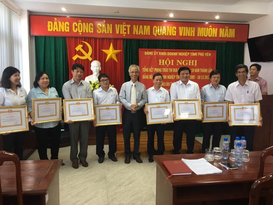 Chiều ngày 12/10/2017, tại Hội trường Đảng ủy Khối Doanh nghiệp tỉnh Phú Yên (số 02 đường Nguyễn Hữu Thọ, Phường 9, Tp Tuy Hòa) Đảng ủy Khối Doanh nghiệp tỉnh Phú Yên đã tổ chức Hội nghị tổng kết Phong trào thi đua Chào mừng kỷ niệm 10 năm ngày thành lập Đảng bộ Khối Doanh nghiệp tỉnh Phú Yên (10/12/2007-10/12/2017). Chủ trì hội nghị Đ/c Nguyễn Thị Minh Hiền, TUV, Bí thư Đảng ủy Khối Doanh nghiệp tỉnh và Đ/c Trần Hữu Cẩm, Phó Bí thư Đảng ủy Khối. Tham dự hội nghị có các đồng chí trong Ban Thường vụ ĐUK, Ban Chấp hành ĐUK, Trưởng phó các Ban thuộc ĐUK và đại diện Cấp ủy 52 tổ chức cơ sở Đảng thuộc Đảng bộ Khối Doanh nghiệp tỉnh Phú Yên.