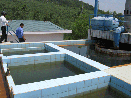 - Khu xử lý nước : Nước sạch được cung cấp vào mạng tiêu thụ sau khi qua Khu xử lý nước với công suất 2.000m3/ngày đêm. .